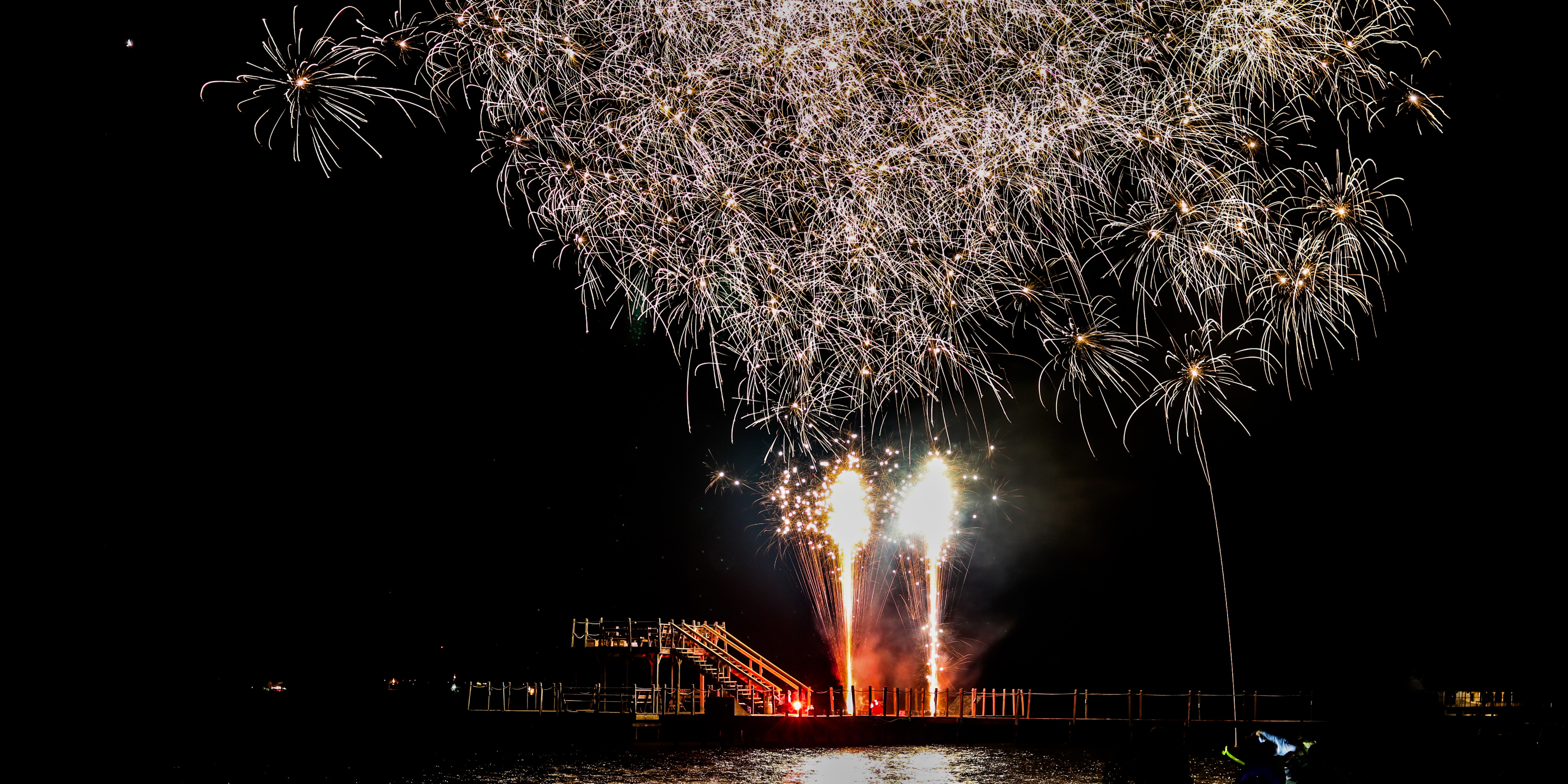 An annual boat parade. 2021 Fireworks Grand Finale. Both restaurants serve traditional American fare and fresh seafood.